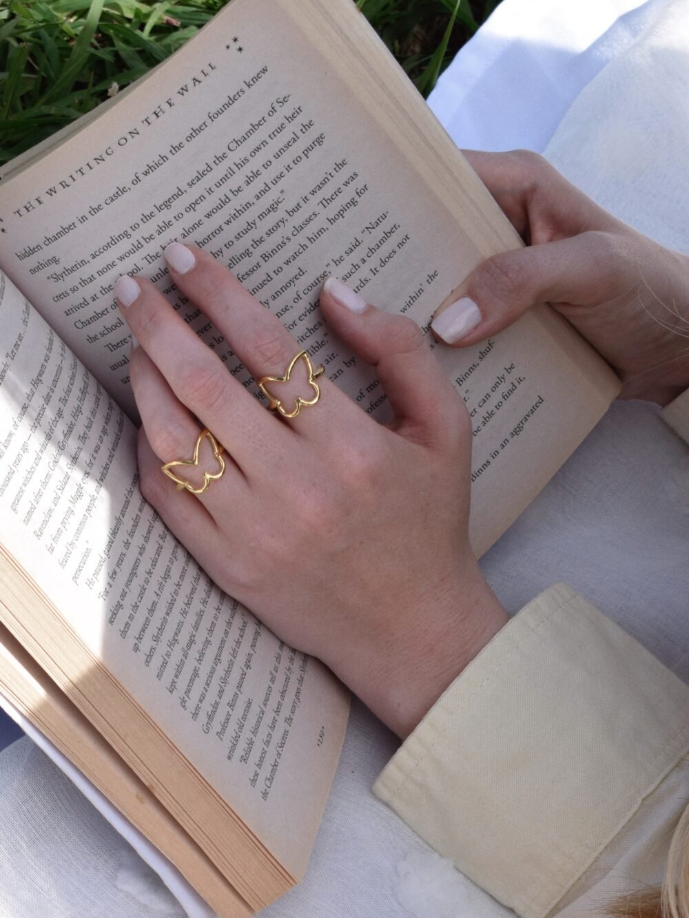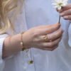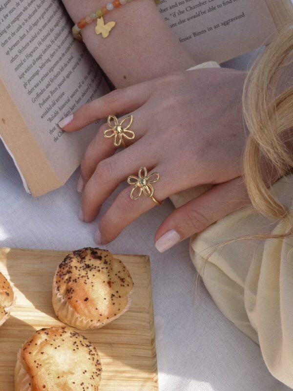 Anillo flor en bronce con baño de oro Ajustable desde la talla 5 a la 9