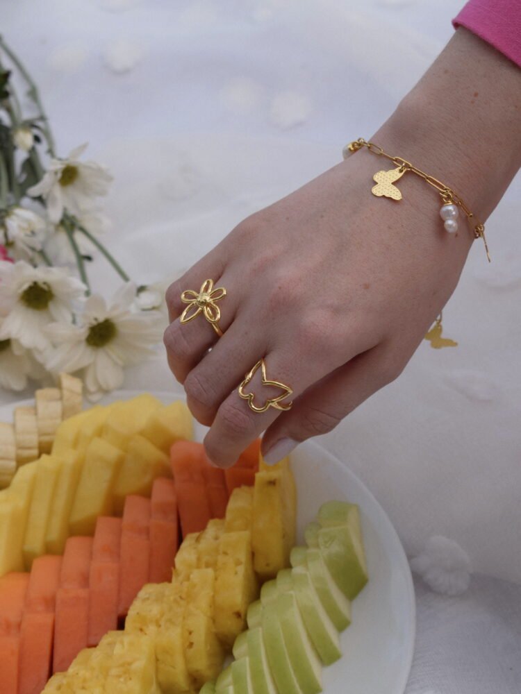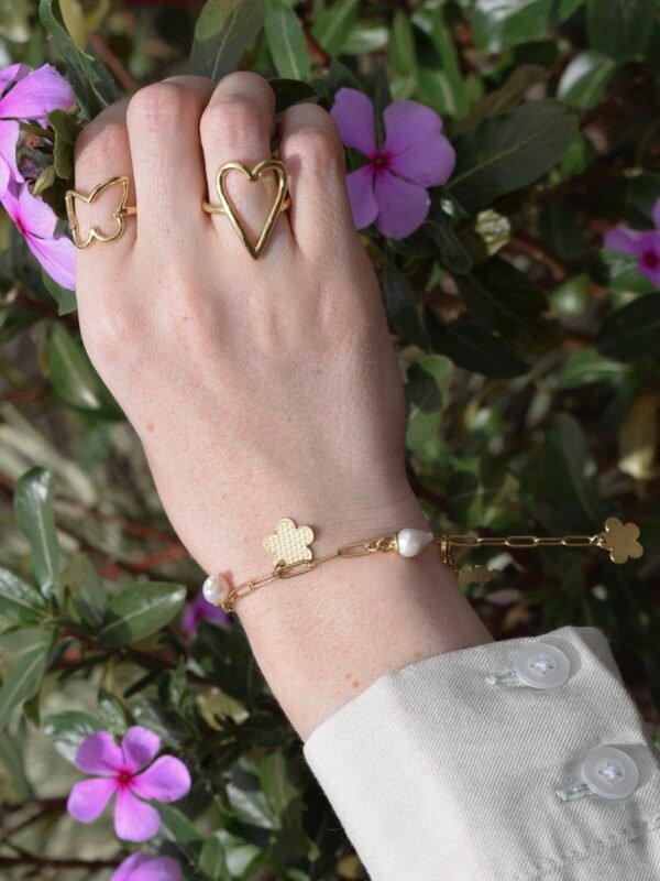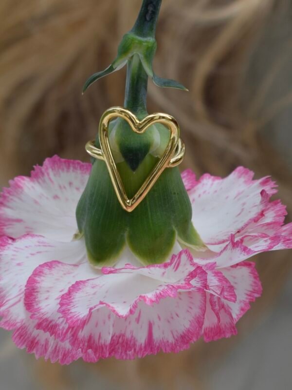 Anillo maxi corazón en bronce con baño de oro Ajustable desde la talla 5 a la 9